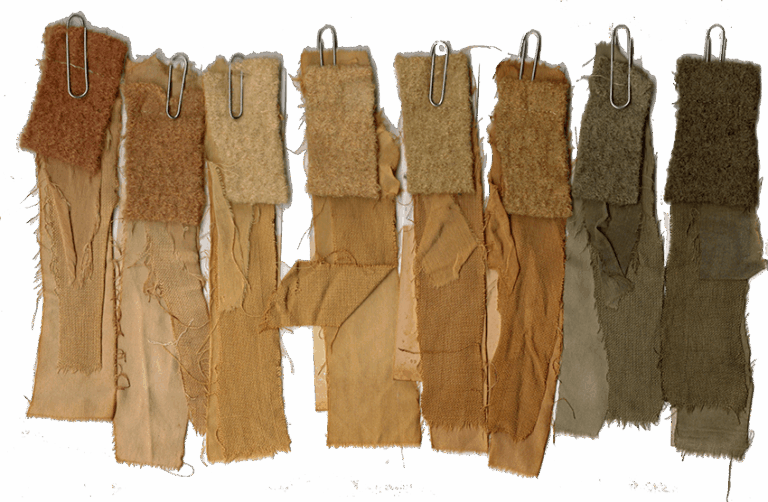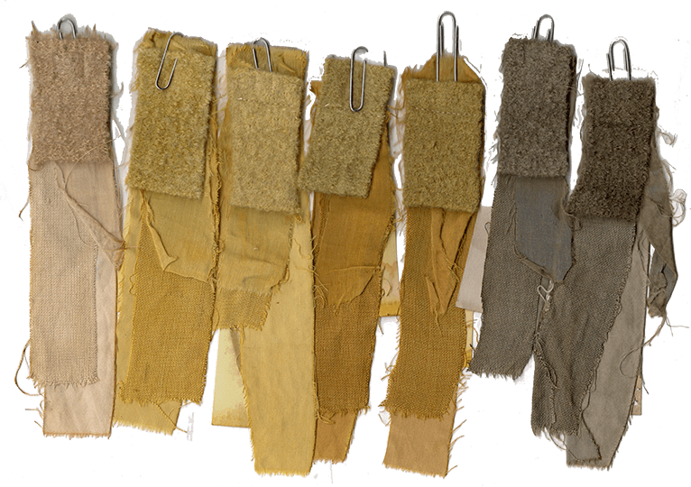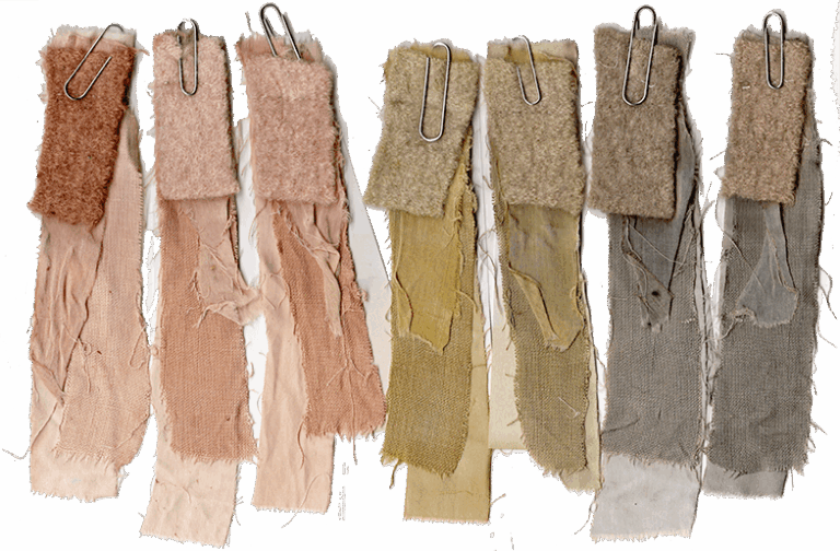 Proeflapjes van natuurlijke vezels (katoen, linnen, wol, zijde)