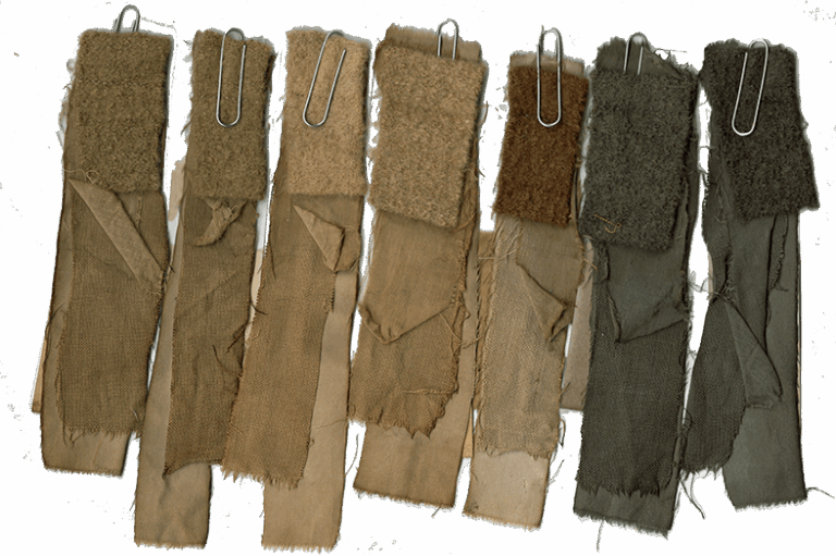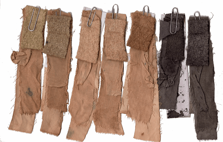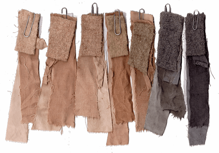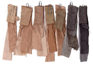 Proeflapjes van natuurlijke vezels (katoen, linnen, wol, zijde)