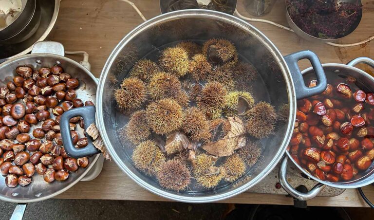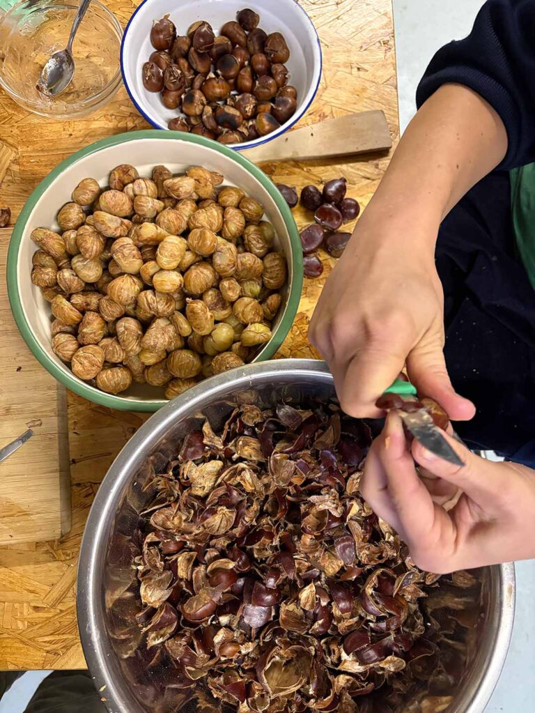 Van de kastanjes maakten we niet alleen verfbaden; we hebben ze ook opgegeten.